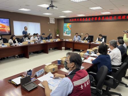 立法院交通委員會20日上午考察臺東地區交通建設,交通委員會由劉櫂豪委員、許智傑委員主持,交通部由王國材部長率民航局林國顯局長、觀光局張錫聰局長、鐵道局伍勝園局長、臺鐵局杜微局長及航政司何淑萍司長等人員參加,臺東縣政府則由饒慶鈴縣長率縣府團隊出席。今日上午考察「臺東及蘭嶼機場跑道暨蘭嶼綠島航站外觀改善工程進度」、「臺東國際包機規劃推動情形」及「花東鐵路雙軌化計畫CB06標知本至臺東辦理情形」等案辦理情形。
