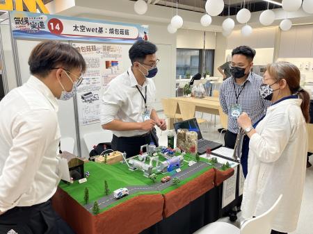 獲得「銀獎」及環保署「淨零轉型實踐特別獎」雙料獎項的勤益科大隊伍,看到臺灣1年產生上億個廢棄香菇太空包的問題,作品「燒包菇菇」開發創新生質能發電系統,結合乾燥、燃燒與發電設備,以鍋爐排放廢熱乾燥香菇太空包,並以其作為燃料,燃燒的能量可提供有機朗肯循環發電,減少碳排放。