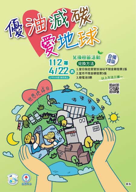 台灣中油秉持企業「綠色共存」的理念,長期投入環境保護及生態保育等工作,每年「422世界地球日」都會發起贈送樹苗活動,全民植樹,為地球降溫而努力,在邁向潔淨能源轉型的同時,不忘實踐ESG企業社會責任,鼓勵人人加入植樹行列,家家從事綠藝美化,保護環境從自身週邊環境做起,希望從一株樹苗開始擴大影響力,鼓勵大家種樹綠化環境,讓地球更美好。