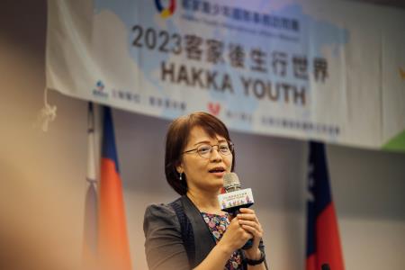 客家委員會主任秘書廖育珮23日出席「2023客家青少年國際事務訪問團」成果發表暨交流座談會,代表主任委員楊長鎮頒發結業證書,並和團員們有說有笑,讚許他們傑出的表現及豐收的學習成果,廖主秘表示這次到新加坡和馬來西亞,在行程上和客家社團接觸的機會都比過往經驗多,相信這些年輕人都有很多收穫,不但促進客家文化交流,同時也增加他們對國際公共事務的接觸和理解,期待未來繼續辦理下去,讓客家文化在台灣及世界各地生根發芽,世代流傳。