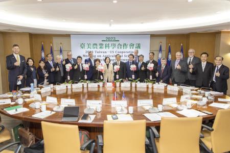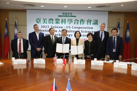 2023年臺美農業科學合作會議(簡稱臺美會議)於昨(6)日召開,美方由農業研究署(簡稱ARS)署長Simon Liu率副署長及相關研究人員共8人與會,為歷年來訪問團人數最多的一次。昨日雙方已見證農委會畜衛所用臺灣名義正式簽署MOU,成為全球口蹄疫研究聯盟(GFRA)與非洲豬瘟研究聯盟(GARA)兩個國際研究組織夥伴成員,雙方也同意未來在「農業淨零碳排」、「永續農漁業」、「韌性林業」及「人才培育交流」等4個主題強化合作。
