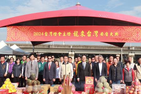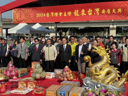2024台灣燈會在本(113)年2月24日至3月10日於臺南「高鐵燈區」及「安平燈區」舉行。主燈「龍來台灣」於今(7)日下午2時正式安座,由交通部觀光署周永暉署長與臺南市政府黃偉哲市長主持安座典禮,並邀請主燈贊助單位中華電信股份有限公司台南營運處蔡旻宏總經理等貴賓共同為台灣燈會各項主要籌備工作揭開序幕,祈求燈會活動順利展開。
