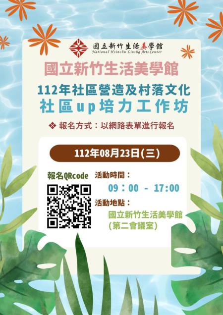 文化部所屬國立新竹生活美學館為了促進社區的共融與發展,協助社造夥伴及團隊了解如何保護並弘揚地方文化記憶、探索在數位時代如何運用科技手段來保存與傳承這些珍貴的文化資產及記憶,並且更有效地管理與組織社區資源,共同打造永續美好的地方歷史文化,特別於8月23日開辦一日「社區up培力工作坊」。