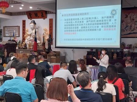 本次研習邀請內政部移民署南投縣服務站陳金妙專員,講授新住民最新法規、在臺權益事項及分享輔導新住民實務經驗,使學員更加瞭解新住民因文化差異所衍生之生活適應、醫療保健、就業權益、子女教養、人身安全等問題,提升多元照顧的專業知能。