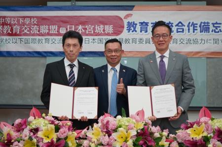 4月16日在教育部林政務次長明裕見證下,由「高級中等以下學校國際教育交流聯盟」與日本宮城縣教育委員會簽署「教育交流合作備忘錄」,此次雙邊簽署備忘錄,將加深我國與日本宮城縣青年學子間對彼此文化之相互了解與尊重,促使雙方未來有更密切的教育交流。有關「高級中等以下學校國際教育交流聯盟」係教育部國教署為擴展高級中等以下學校國際交流而設立,並負責接待來各地來訪我國中小學的教育團體及代表我國進行國民教育階段之國際交流工作。