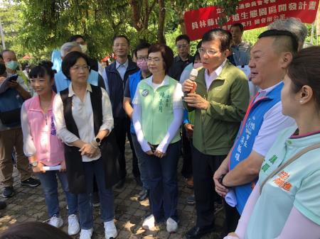 今日立法院交通委員會考察彰化地區交通建設案,由立法院陳委員素月主持,彰化縣由王惠美縣長及相關單位出席;交通部由王國材部長率公路總局陳文瑞局長、臺鐵局杜微局長、觀光局周廷彰副局長、路政司林福山司長等相關主管人員參加,考察「藤山步道生態園區開發計畫」、「台76線快速公路林厝交流道塞車改善」、「東彰北段新闢工程辦理情形」及「中彰投苗『TPASS行政院通勤月票』辦理情形」。