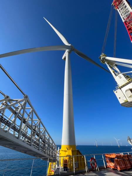 台灣海峽於秋冬季時風力強勁,但離岸風電海事工程團隊仍持續待命施作,抓緊氣候間隔,努力施工。經濟部能源署今(5)日表示,工程團隊於風浪起伏的工作船上操作起重機具,克服海象挑戰,已於今日完成第270座離岸風力機組,累積裝置容量超過2.1GW,也將台灣海峽的自然風力轉化為國家發展所需的綠色電力,成為支持台灣產業國際競爭力的強大後盾。