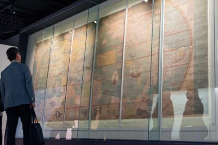 「無界之涯—從海出發探索十六世紀東西文化交流」特展,透過展出的輿圖、羅盤、銀幣、沈船出水的貿易瓷,以及故宮典藏書畫、文獻等不同材質、不同領域的展件,訴說一個藝術、知識與文化多元交會的世界新貌,展現16世紀東西文化交流的豐富內涵。