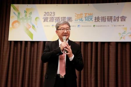 環境部沈志修常務次長於開幕式致詞時表示,為確立靜脈產業減碳路徑及效益,打造資源循環業綠色資產,達到物質永續的淨零轉型。本年度資源循環署輔導資源循環業建立產業基線資料,提供碳排放分析及建構業者能力,應用智慧感測技術執行電力設備健檢,輔助業者節能減碳,藉此研討會機會讓廠商以實務經驗分享,同時展示資源循環業永續碳管理推動成果。