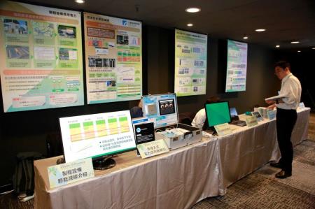 研討會中布置3個成果展區,包含大小偵碳永續碳管理、應用非侵入式電力感測提供製程設備節能減碳應用及成果、公民營清除處理機構永續碳管理介紹等。展區內提供碳管理資訊化作業方式,帶領資源循環業業者線上操作使用;另外,現場架設互動式電力感測箱,示範電器設備於電力迴路中,利用電力感測器取得即時電壓及電流波形等測量數據,展示透過數據找到可節能熱區,達到減碳效果。