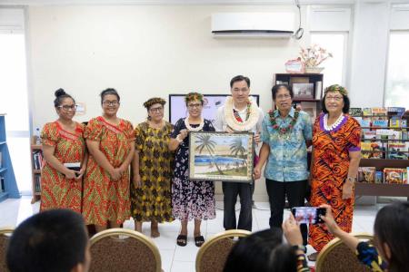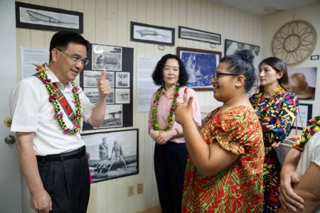 原民會夷將Icyang主委及南島民族論壇各國代表,8月18日參訪馬紹爾群島 Alele Museum & Public LibraryAlele國家博物館,同時瞭解原民會捐助「馬紹爾語言復振計畫」執行成果,由 RMI Ministry of Culture & Internal Affairs文化暨內政部秘書兼博物館董事主席Brenda Alik及博物館館長Wisse Amram親自接待並導覽解說。