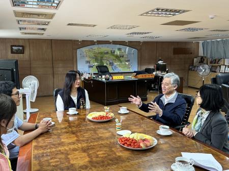 客家委員會日前公布111年度推動客語為通行語評核結果,客委會副主任委員范佐銘9日前往臺中市,向榮獲推動客語為通行語成效評核「優等」的石岡區公所劉素幸區長道賀,並現場頒發100萬元之獎勵金,也就近前往拜會臺中市豐原區公所區長洪峰明及南投縣國姓鄉鄉長邱美玲,就公務人員客語能力提升與改善,進行意見交流。