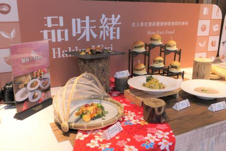臺北老爺酒店五星主廚林繼正,擷取客庄食材在地風味特色,選用客委會輔導的桔醬、豆腐乳、桶柑果醬及老菜脯等,以義大利麵、小漢堡等速食樣貌重塑客家美食,期打進年輕人及大眾市場,本次精心推出桔醬牛柳義大利麵、脆皮腐乳炸雞漢堡、溫泉蛋鮭魚佐油甘果油醋醬、舒肥鴨胸佐奶油桶柑醬汁、老菜脯菱角濃湯,以五星級飯店之技法與擺盤,隆重呈現客家「品味緒」主題套餐,臺北老爺酒店將於8月1日起在2樓Le Café咖啡廳,同時供應單點及套餐服務,讓民眾得以在日常快速而忙碌的生活中,接觸到客家飲食新風味。