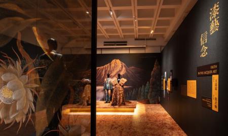 本展依七大主題打造沉浸式展場氛圍,展出跨界共創服裝與創作過程的作品紀錄:「廟宇彩繪神起少年」採人間國寶建築彩繪藝師莊武男創作門神為主場景,呈現設計師周裕穎所設計具天燈輪廓的風衣與天公棒球帽;「奪魄勾魂什家將」以廟宇建築及敬香為佈置靈感,演繹設計師簡國彥以鎮狩宮吳敬堂藝陣社-什家將為發想的蓮花面俐落西裝;「漆藝信念」以人間國寶漆藝家王清霜作品轉化為舞臺式場景,完美呼應設計師簡君嫄透過塗繪時裝致敬漆藝。